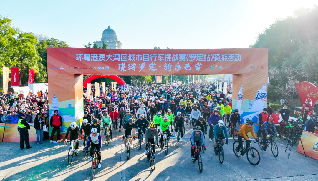 车轮逐风,泷州沸腾。1月11日,罗定市文化广场内人头攒动、彩旗飘扬,环粤港澳大湾区城市自行车挑战赛(罗定站)骑游活动在此正式燃情开赛。来自全国各地的600余名骑行爱好者以休闲骑游的方式穿梭于罗定的青山绿水与城乡街巷之间,在车轮转动中感受千年古邑的独特魅力与人文风情。