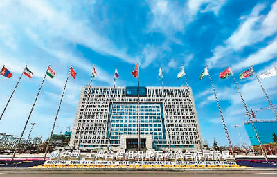 有着“上合示范区国家会客厅”之称的“上合之珠国际博览中心”是一座融合会议会展、观光旅游、商品展销文化交流、商事服务等功能于一体的“一站式”文化体验综合新空间。这里展示了“上合示范区”不断推进国际物流、现代贸易、双向投资合作、商旅文交流发展“四个中心”和上海合作组织经贸学院建设的发展理念和开放布局。