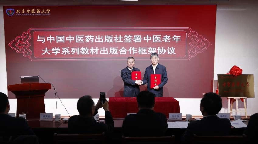 会议最后,北京中医药大学与中国中医药出版社签署了“北京中医药大学中医老年大学系列教材出版合作框架协议”。在未来三年中,大学和出版社将共同打造中医老年大学的配套教材,共同建设中医老年大学的学术资源。