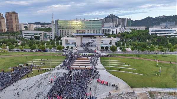 青春热血 银滩亮剑|山东外事职业大学举行2025级万名新生15公里军训拉练活动
