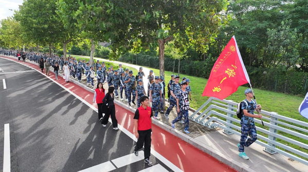 为磨炼学生坚强意志,弘扬吃苦耐劳精神,培养团队协作意识,9月7日,山东外事职业大学组织开展了主题为“青春热血 银滩亮剑”的2025级新生15公里军训拉练活动。学校党委副书记、副校长李恒强,军训教官,相关职能部门及各学院负责人、带班辅导员与近万名参训新生共同参加。
