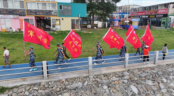 随着出发号令响起,党旗、国旗、校旗迎风招展,浩浩荡荡的队伍由李恒强领行,沿着长江路阔步前行。队伍途经仙人桥、福如东海、大拇指广场等银滩地标后折返,全程15公里。行进中,口号声铿锵嘹亮,脚步声整齐有力,师生们相互激励、彼此扶持,形成了一股团结奋进的洪流。新生们昂首阔步、意气风发,与迎风招展的旗帜共同勾勒出一幅青春昂扬的壮美画卷,成为海岸线上一道亮丽风景。