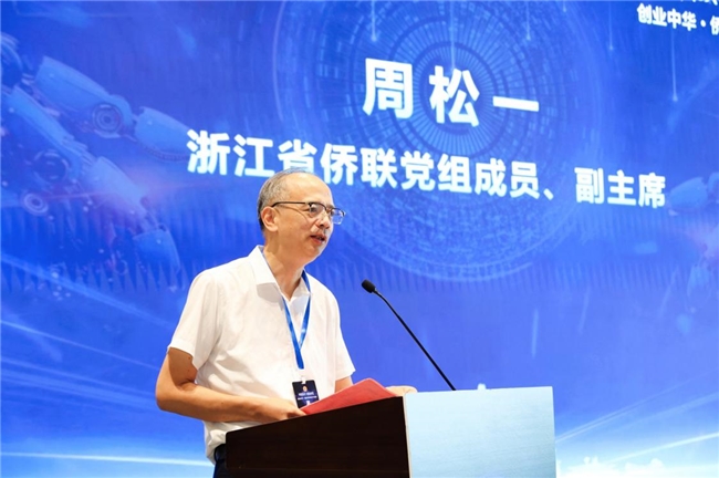 周松一向活动的举行表示热烈祝贺。周松一指出,宁波是充满历史底蕴和时代活力的重点侨乡,鄞州区更是经济社会发展的核心引擎。在当前人工智能浪潮下,本次活动聚焦“AI赋能产业数字化转型”可谓恰逢其时。并提出三点希望与侨界青年共勉:一是锚定赛道,将自身发展与浙江、宁波产业升级深度绑定,实现价值共赢;二是传承侨脉,汇聚侨界资源,凝聚起爱国爱乡、创新创业的合力;三是勇立潮头,敢于在人工智能等新兴领域探索突破,展现时代担当。