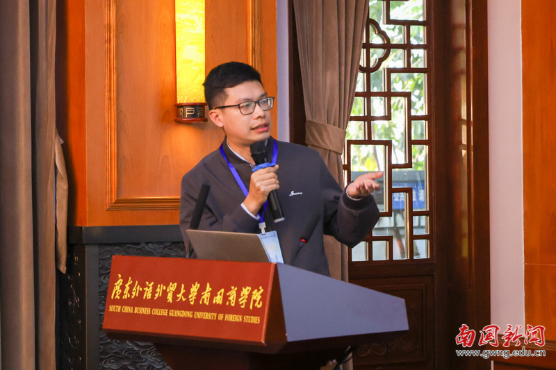 论文交流环节由经济学院副院长高洁主持。交流开始前,大会先对优秀论文作者进行表彰——从征集到的30篇论文中评选出10篇优秀论文,颁奖嘉宾为获奖代表颁发证书。表彰结束后,夏海霞、李淑一、周泳光、方泽凯、党雪、欧杰、吴锋、邓永亮等八位来自省内高校的获奖作者先后登台,结合自身研究方向分享核心成果。他们的研究紧密围绕广东经济发展与国内大循环需求,涵盖多类关键领域:既有广东外贸企业韧性提升、低空经济财政支持等产业政策议题,也包含数字化创新与收入不平等、人工智能金融应用等科技经济关联领域分析,还涉及Z世代消费潜力释放、数据资产信息披露等消费与企业发展维度研究,兼具学术深度与实践针对性,引发现场广泛关注。