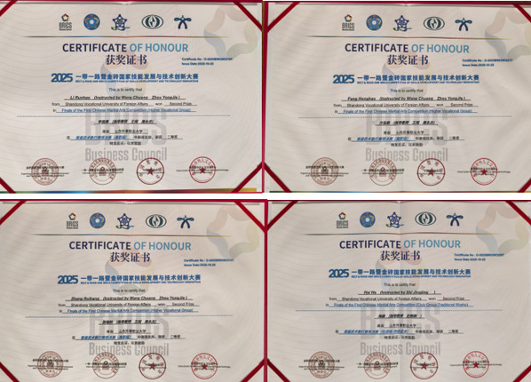 以赛为桥,联通世界!作为教育部批准设立的职业本科高校,山东外事职业大学以此次赛事承办与参赛为重要契机,深度践行职业教育国际化发展战略,聚焦“语言+职业技能”特色育人模式,扎实推进“以赛促教、以赛促学、赛教融合”的育人理念。通过赛事实践,进一步强化学生综合素质培养,着力培育具备技能专长、创新思维的复合型人才。未来,学校将持续深耕国际化技术技能人才培养领域,力争在更多国际赛事中再创辉煌,为国家和社会输送更多优质实用型人才。