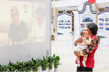 尹嘉毅奶奶带着小孙子参展,观看自己的家风讲述视频