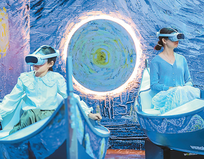 4月20日,游客在山东青岛世博园XR梵高数字艺术体验馆进行数字产品体验。