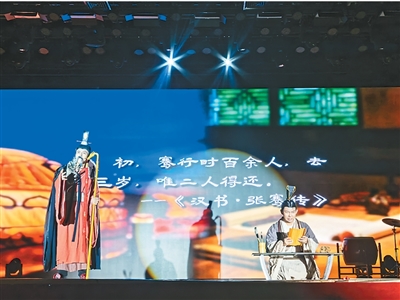 两汉篇节目《驼铃传汉声》中,对外经济贸易大学国际商学院学生正在诵读《汉书·张骞传》。