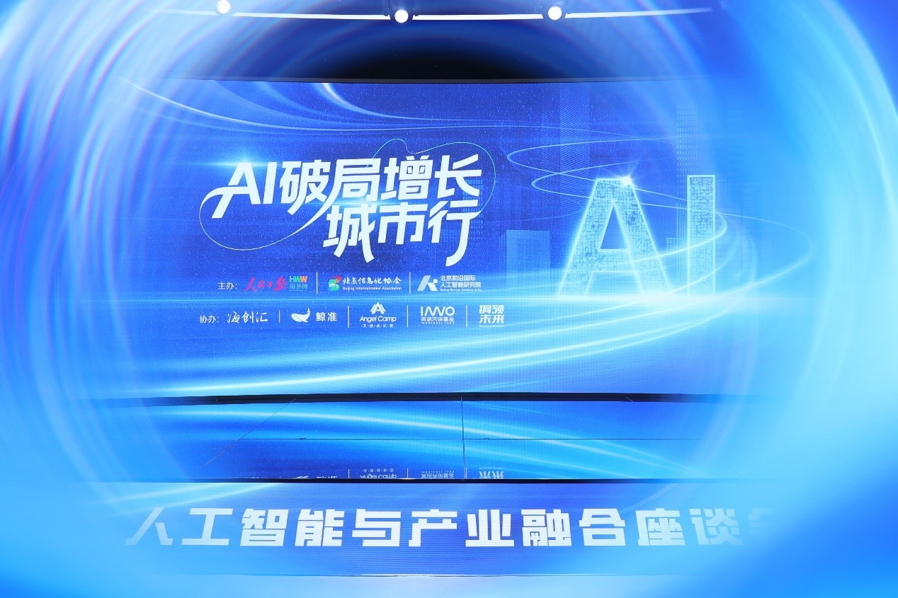 启动仪式现场,人民日报海外网、北京信息化协会、北京前沿国际人工智能研究院、海创汇、天使成长营、铜领未来科创中心、达武创投、源数创投、海创汇鲸准等嘉宾共同登台,同时点亮电子屏幕,“AI破局增长城市行”系列活动正式启航。