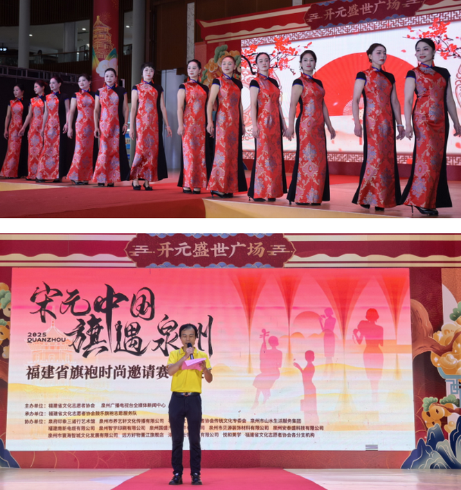 2025年“宋元中国·旗遇泉州”——福建省旗袍时尚邀请赛作为一项融合宋元中国海丝泉州文化的盛事,旨在通过旗袍这一东方美学载体,展现东方女性的优雅智慧与文化魅力,推动非遗元素与现代生活的深度对话,总决赛于2025年7月26日在泉州开元盛世广场圆满落幕。福建省文化志愿者协会会长刘宗利、监事长杨新榕等以及来自社会各界的爱心企业、旗袍爱好者共同见证旗袍大赛这一盛事。