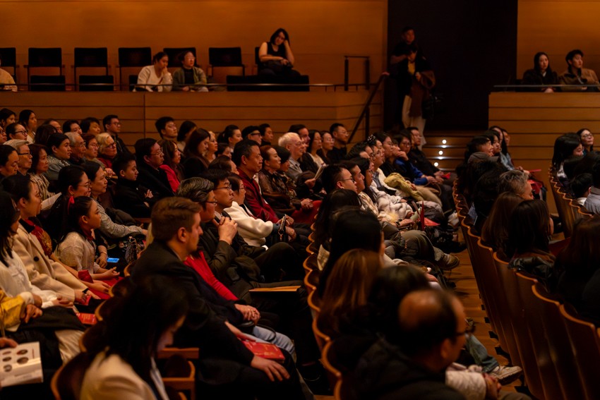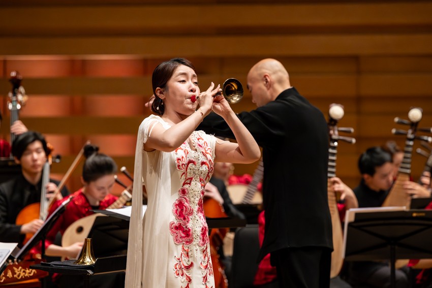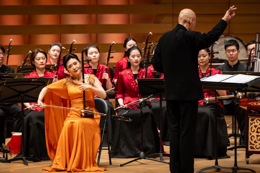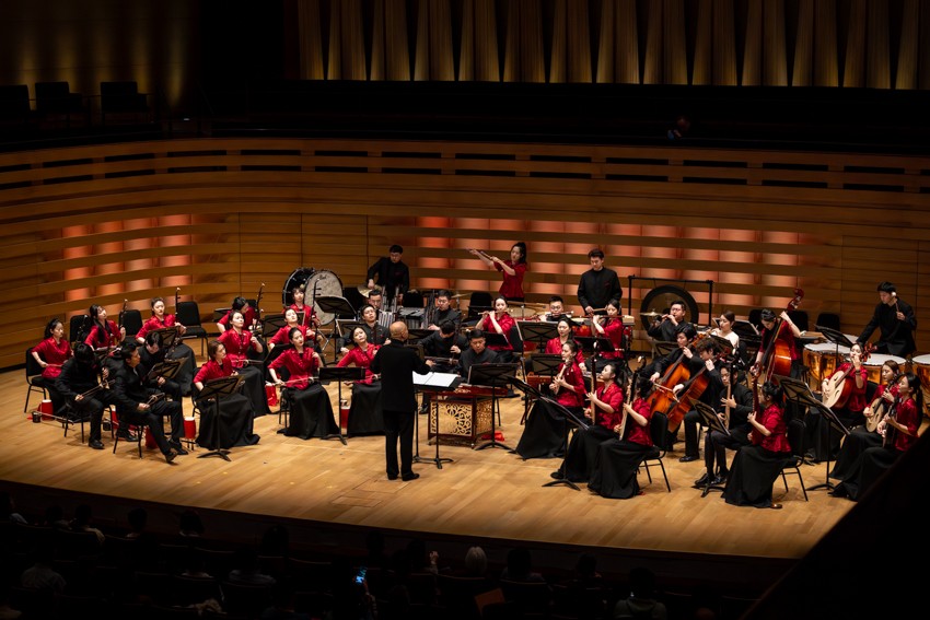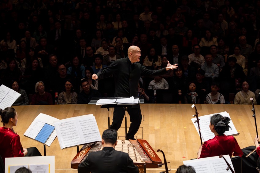 第一次返场,掌声不息;第二次返场,喝彩再起。第三次返场时,乐团奏响了一首带有京剧韵味的乐曲,皮黄腔调与民乐交织,韵味悠长,将现场气氛再次推向高潮。当掌声第四次响起时,艺术家们再次登台,以一曲欢快祥和的《花好月圆》为这个难忘的夜晚画上圆满句号。乐声渐落,掌声仍久久回荡在音乐厅内。